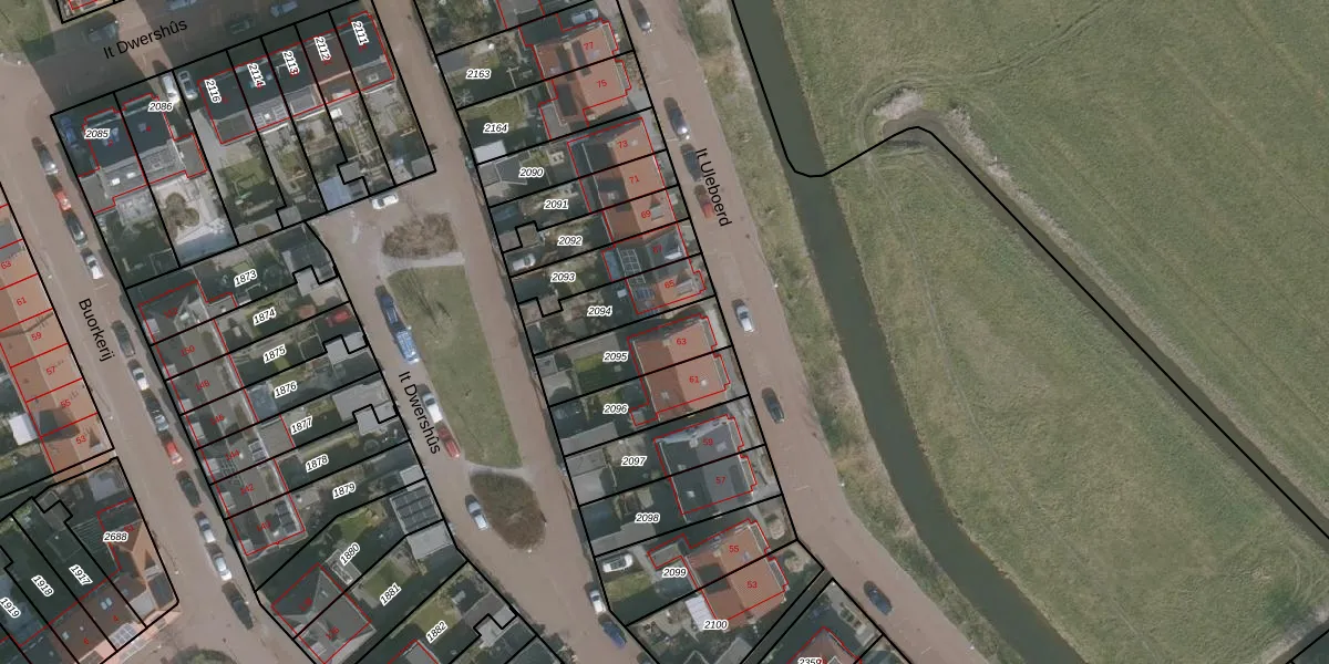 Het perceel waarop It Uleboerd 63 staat heeft een oppervlakte van 233 m². Dit is een middelgroot perceel. De perceeloppervlakte wordt geregistreerd door het Kadaster. Gedetailleerde informatie over de maten van dit perceel kunt u vinden in het rapport Kadastrale kaart met maatvoering van It Uleboerd 63.