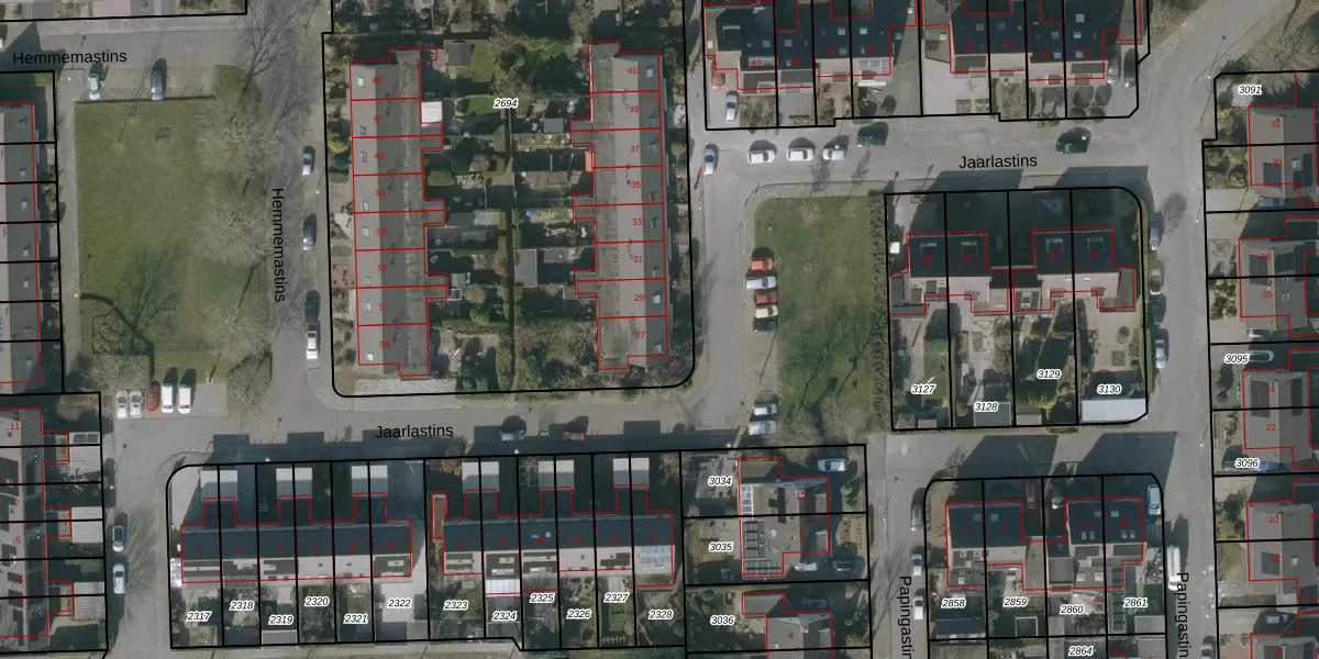 Het perceel waarop Jaarlastins 27 staat heeft een oppervlakte van 4302 m². Dit is een zeer groot perceel. De perceeloppervlakte wordt geregistreerd door het Kadaster. Gedetailleerde informatie over de maten van dit perceel kunt u vinden in het rapport Kadastrale kaart met maatvoering van Jaarlastins 27.