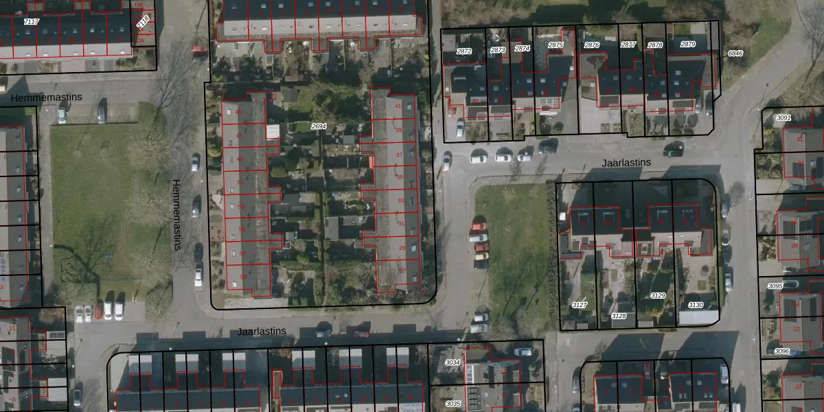 Het perceel waarop Jaarlastins 33 staat heeft een oppervlakte van 4302 m². Dit is een zeer groot perceel. De perceeloppervlakte wordt geregistreerd door het Kadaster. Gedetailleerde informatie over de maten van dit perceel kunt u vinden in het rapport Kadastrale kaart met maatvoering van Jaarlastins 33.