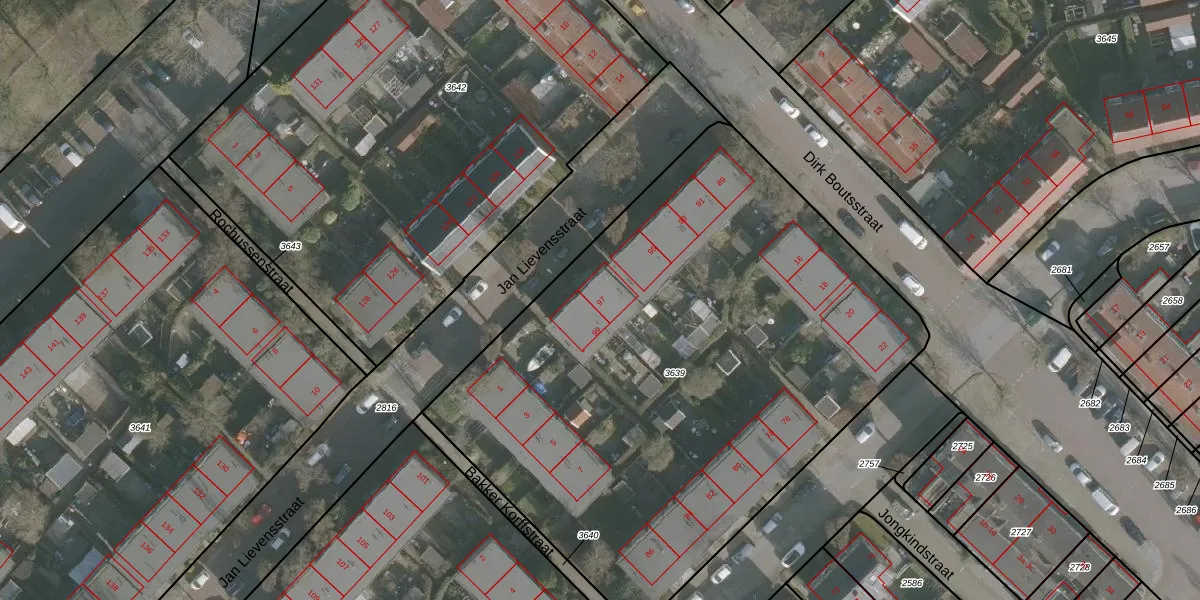 Het perceel waarop Jan Lievensstraat 97 staat heeft een oppervlakte van 3600 m². Dit is een zeer groot perceel. De perceeloppervlakte wordt geregistreerd door het Kadaster. Gedetailleerde informatie over de maten van dit perceel kunt u vinden in het rapport Kadastrale kaart met maatvoering van Jan Lievensstraat 97.