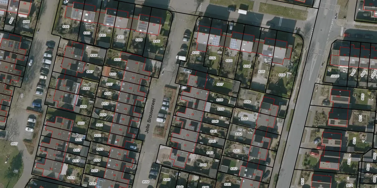 Jelle Brouwerwei 21 is gelegen op kadastraal perceel LWD00D8338. Deze kadastrale aanduiding is uniek en wordt gebruikt door het Kadaster om eigendomsrechten en andere zakelijke rechten vast te leggen. Het perceel maakt onderdeel uit van de kadastrale gemeente Leeuwarden.