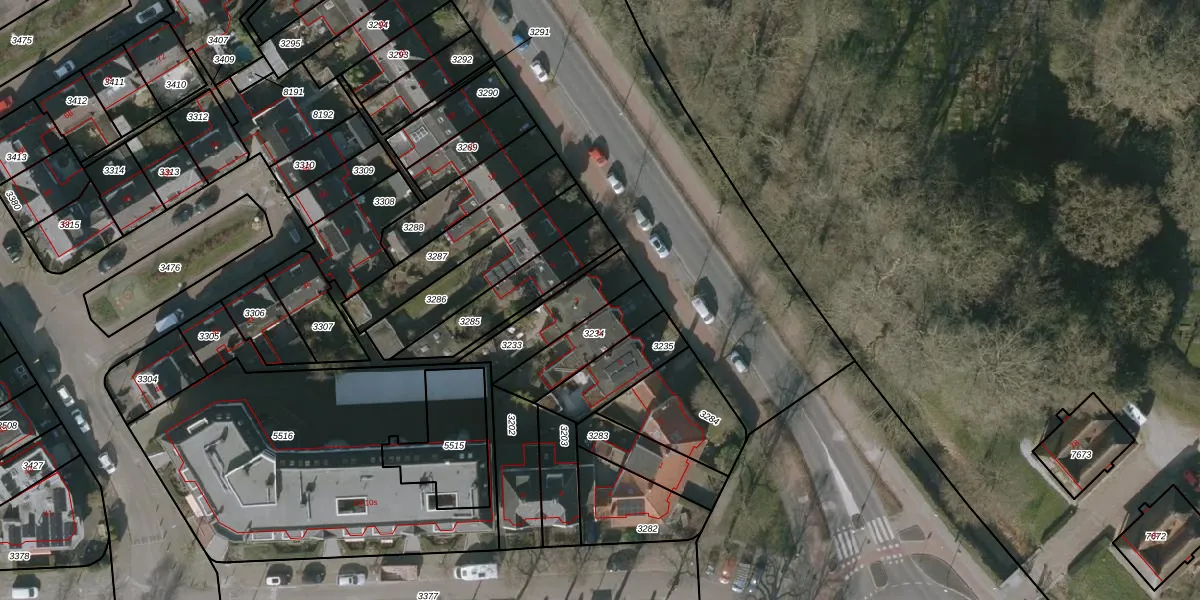 Gebruik de zoekbalk of klik op een perceel voor informatie over de adressen binnen dit perceel.