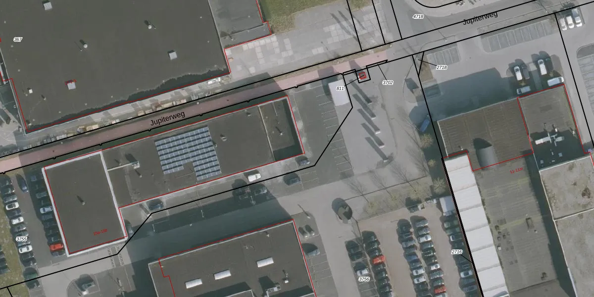 Het perceel waarop Jupiterweg 15-b staat heeft een oppervlakte van 4084 m². Dit is een zeer groot perceel. De perceeloppervlakte wordt geregistreerd door het Kadaster. Gedetailleerde informatie over de maten van dit perceel kunt u vinden in het rapport Kadastrale kaart met maatvoering van Jupiterweg 15-b.