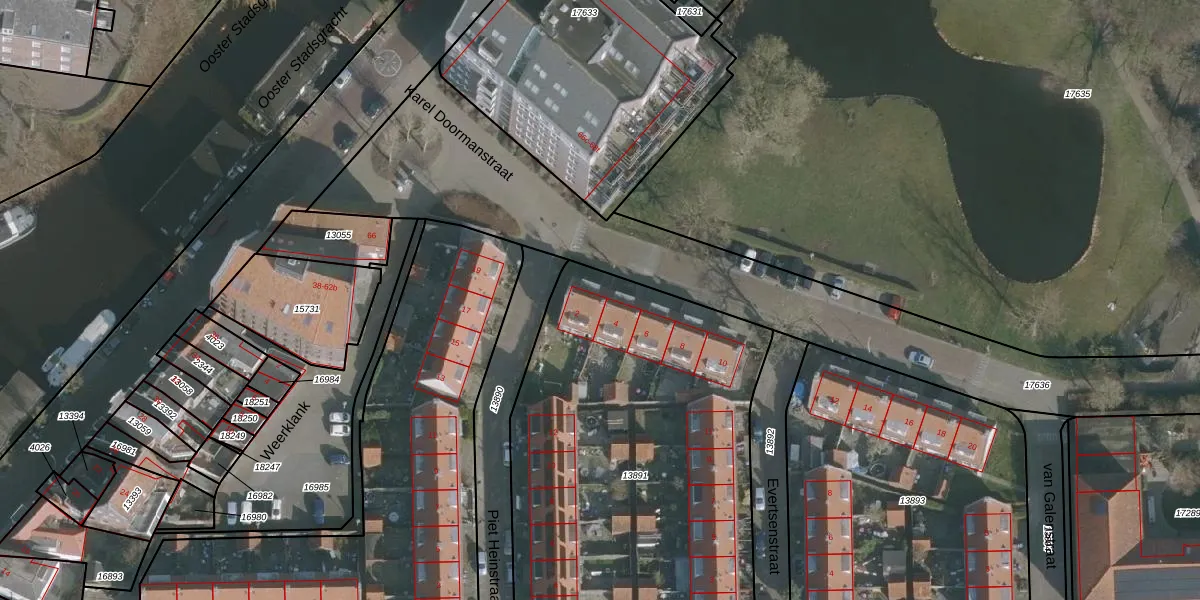 Het perceel waarop het adres ligt is LWD00-G-13891. De afkorting 'LWD00' staat voor kadastrale gemeente Leeuwarden. De oppervlakte van het perceel is 2300 m². Dat is groter dan gemiddeld in Leeuwarden, waar de gemiddelde perceeloppervlakte op 1522,59 m² ligt. Het kleinste perceel in de kadastrale gemeente is 0 m² groot. De grootste perceeloppervlakte is 1,54 km². Er zijn 17 adressen aanwezig op het perceel. In de Basisregistratie Kadaster (BRK) werden de grenzen van het perceel geregistreerd op 17-04-2003.
