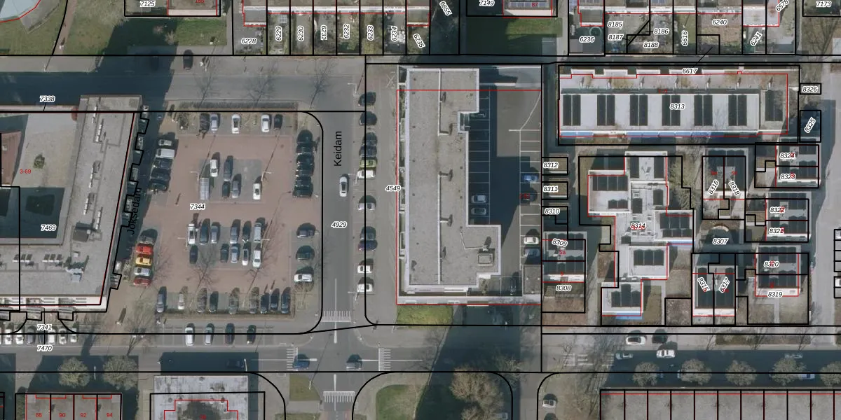 Het perceel waarop Keidam 36 staat heeft een oppervlakte van 2630 m². Dit is een zeer groot perceel. De perceeloppervlakte wordt geregistreerd door het Kadaster. Gedetailleerde informatie over de maten van dit perceel kunt u vinden in het rapport Kadastrale kaart met maatvoering van Keidam 36.