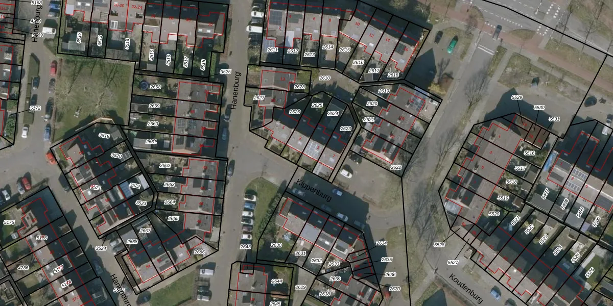 Gebruik de zoekbalk of klik op een perceel voor informatie over de adressen binnen dit perceel.