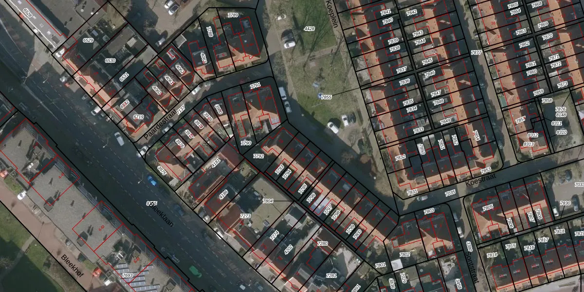 Het perceel waarop Koeplein 17 staat heeft een oppervlakte van 89 m². Dit is een klein perceel. De perceeloppervlakte wordt geregistreerd door het Kadaster. Gedetailleerde informatie over de maten van dit perceel kunt u vinden in het rapport Kadastrale kaart met maatvoering van Koeplein 17.
