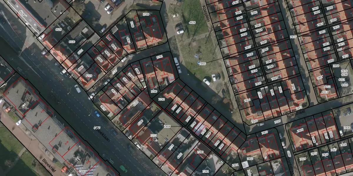 Gebruik de zoekbalk of klik op een perceel voor informatie over de adressen binnen dit perceel.