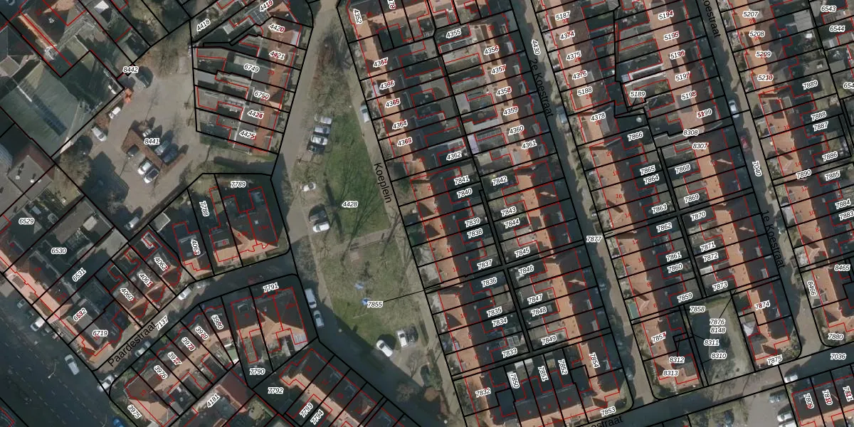 Het perceel waarop Koeplein 20 staat heeft een oppervlakte van 97 m². Dit is een klein perceel. De perceeloppervlakte wordt geregistreerd door het Kadaster. Gedetailleerde informatie over de maten van dit perceel kunt u vinden in het rapport Kadastrale kaart met maatvoering van Koeplein 20.