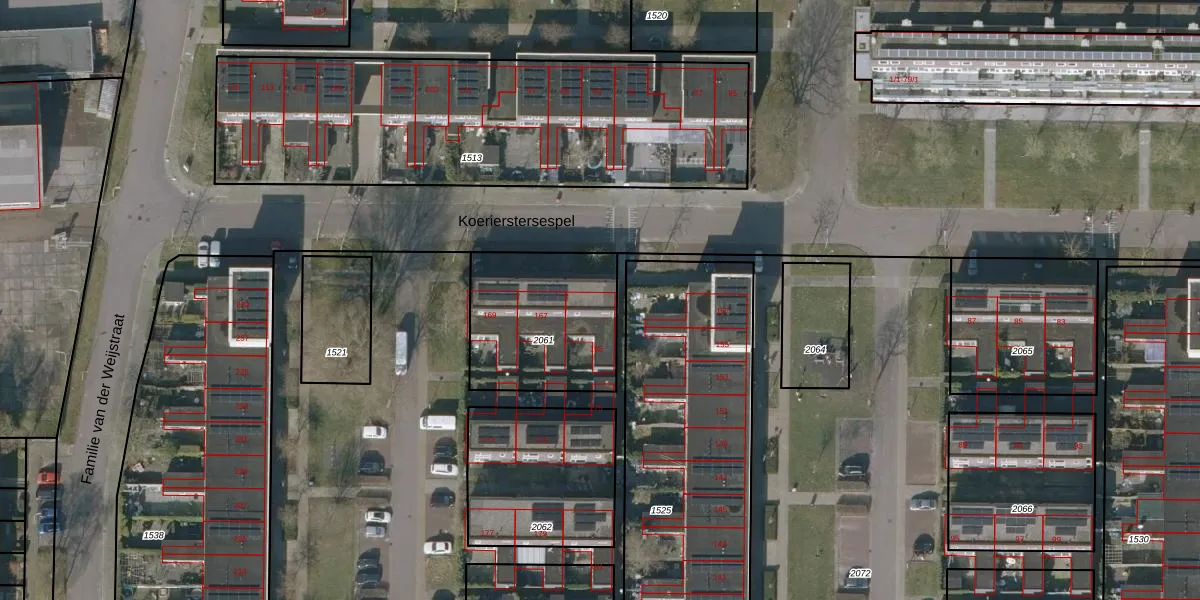 Het perceel waarop Koerierstersespel 165 staat heeft een oppervlakte van 562 m². Dit is een groot perceel. De perceeloppervlakte wordt geregistreerd door het Kadaster. Gedetailleerde informatie over de maten van dit perceel kunt u vinden in het rapport Kadastrale kaart met maatvoering van Koerierstersespel 165.