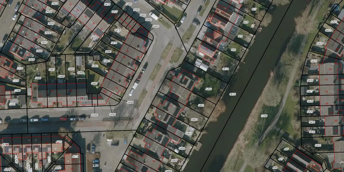 Gebruik de zoekbalk of klik op een perceel voor informatie over de adressen binnen dit perceel.