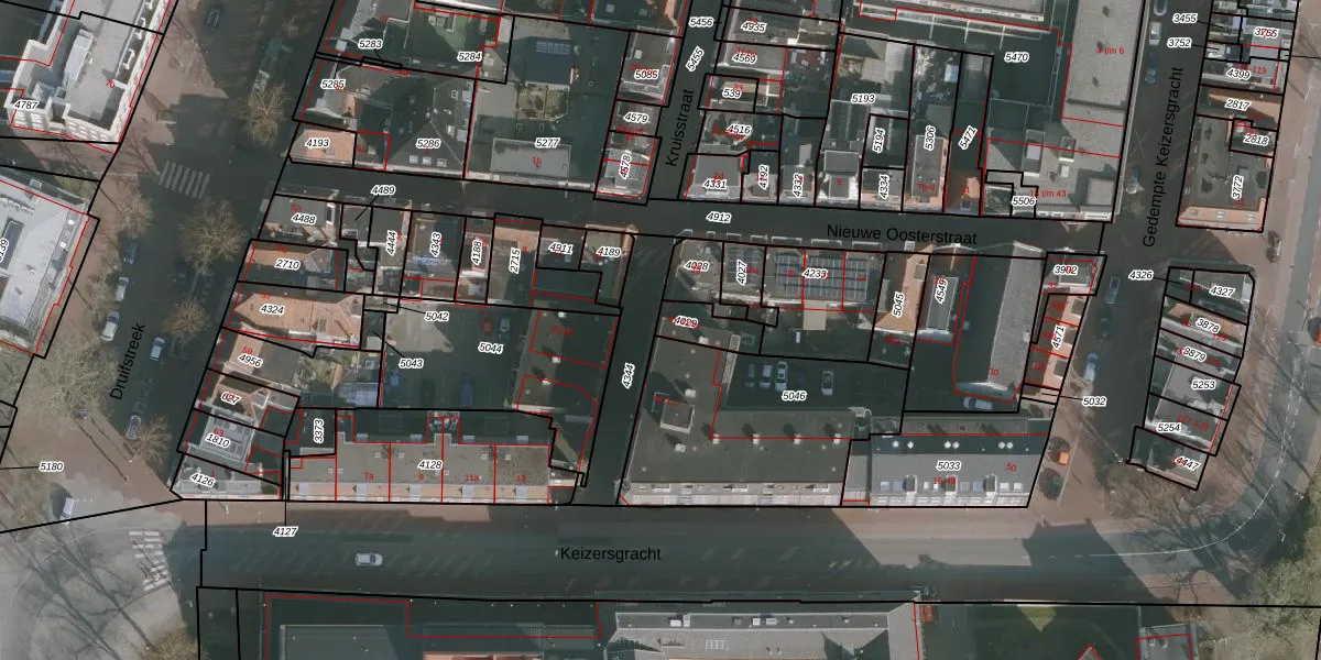 Het perceel waarop Kruisstraat 41 staat heeft een oppervlakte van 87 m². Dit is een klein perceel. De perceeloppervlakte wordt geregistreerd door het Kadaster. Gedetailleerde informatie over de maten van dit perceel kunt u vinden in het rapport Kadastrale kaart met maatvoering van Kruisstraat 41.