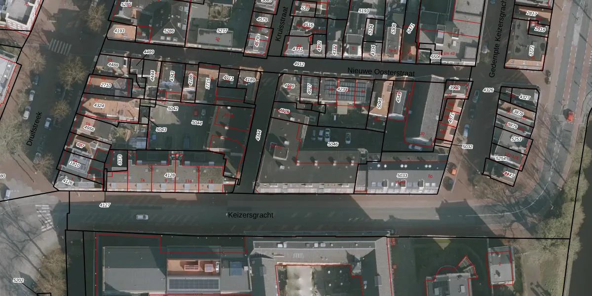 Het perceel waarop Kruisstraat 55 staat heeft een oppervlakte van 850 m². Dit is een groot perceel. De perceeloppervlakte wordt geregistreerd door het Kadaster. Gedetailleerde informatie over de maten van dit perceel kunt u vinden in het rapport Kadastrale kaart met maatvoering van Kruisstraat 55.