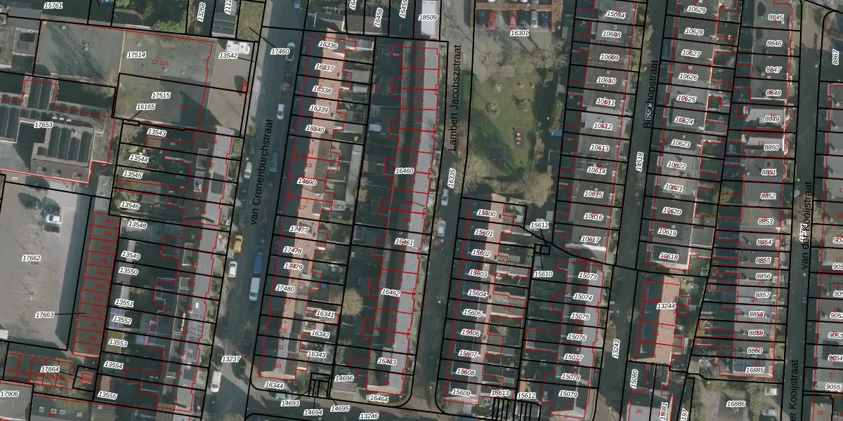 Het perceel waarop Lambert Jacobszstraat 16 staat heeft een oppervlakte van 825 m². Dit is een groot perceel. De perceeloppervlakte wordt geregistreerd door het Kadaster. Gedetailleerde informatie over de maten van dit perceel kunt u vinden in het rapport Kadastrale kaart met maatvoering van Lambert Jacobszstraat 16.