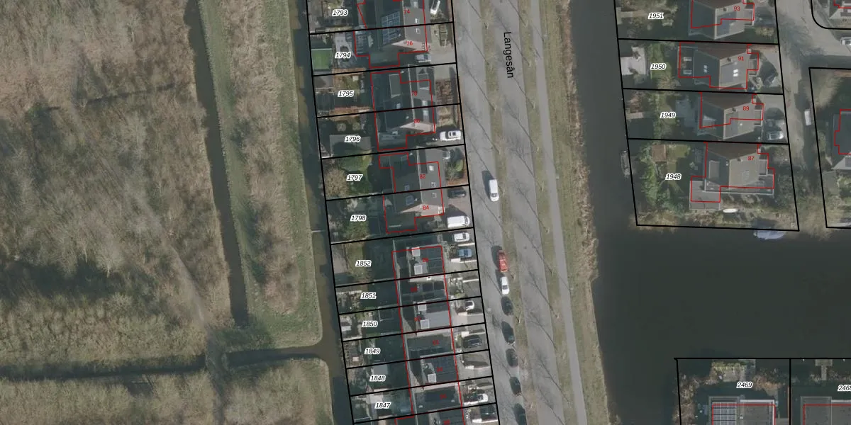 Het perceel waarop Langesân 84 staat heeft een oppervlakte van 348 m². Dit is een groot perceel. De perceeloppervlakte wordt geregistreerd door het Kadaster. Gedetailleerde informatie over de maten van dit perceel kunt u vinden in het rapport Kadastrale kaart met maatvoering van Langesân 84.