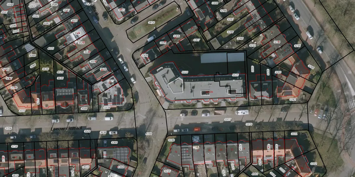 Het adres ligt op het perceel LWD00-E-5516, dat zich in de kadastrale gemeente Leeuwarden bevindt. Het perceel is 1435 m² groot. Dat is kleiner dan de gemiddelde perceeloppervlakte in Leeuwarden, dat op 1522,59 m² ligt. De grootste perceeloppervlakte in de kadastrale gemeente is 1,54 km². De kleinste oppervlakte bedraagt 0 m². Er zijn 20 adressen aanwezig op het perceel. De huidige grenzen van het perceel zijn digitaal in de Basisregistratie Kadaster (BRK) geregistreerd op 14-02-2000.