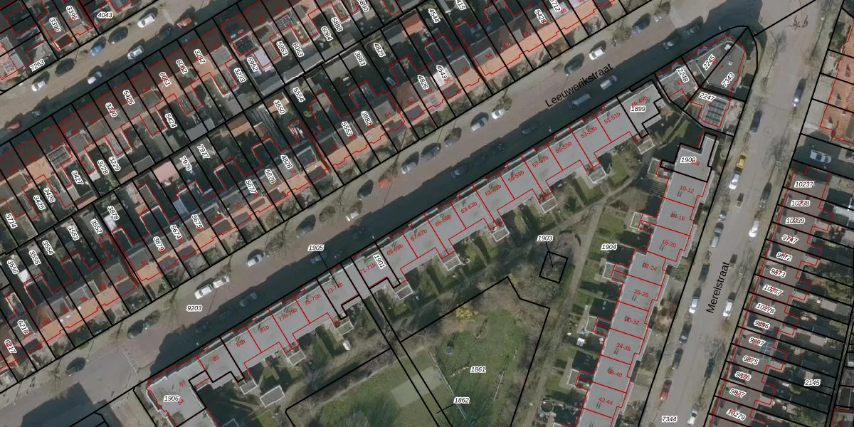 Het perceel waarop Leeuwerikstraat 65 staat heeft een oppervlakte van 4030 m². Dit is een zeer groot perceel. De perceeloppervlakte wordt geregistreerd door het Kadaster. Gedetailleerde informatie over de maten van dit perceel kunt u vinden in het rapport Kadastrale kaart met maatvoering van Leeuwerikstraat 65.