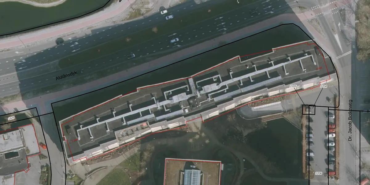 Het perceel waarop het adres ligt is HZM00-F-2207. De afkorting 'HZM00' staat voor kadastrale gemeente Huizum. Het perceel is met 1,9 ha relatief groot. Het gemiddelde ligt in de kadastrale gemeente Huizum op 1504,01 m². Het kleinste perceel in de kadastrale gemeente is 0 m² groot. De grootste perceeloppervlakte is 75,1 ha. Op het perceel liggen in totaal 255 adressen. In de Basisregistratie Kadaster (BRK) werden de grenzen van het perceel geregistreerd op 11-11-2016.