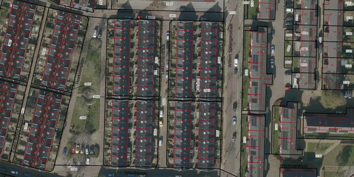 Het perceel waarop Lekkumerstraat 16 staat heeft een oppervlakte van 1314 m². Dit is een zeer groot perceel. De perceeloppervlakte wordt geregistreerd door het Kadaster. Gedetailleerde informatie over de maten van dit perceel kunt u vinden in het rapport Kadastrale kaart met maatvoering van Lekkumerstraat 16.