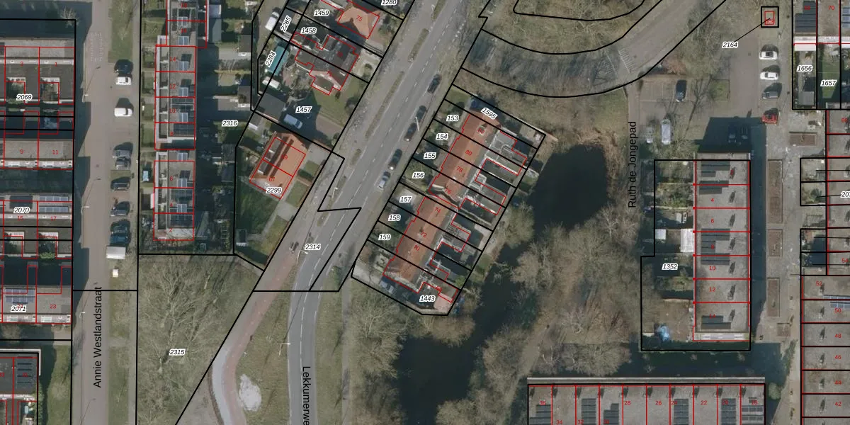 Lekkumerweg 74 is gelegen op kadastraal perceel LWD00H157. Deze kadastrale aanduiding is uniek en wordt gebruikt door het Kadaster om eigendomsrechten en andere zakelijke rechten vast te leggen. Het perceel maakt onderdeel uit van de kadastrale gemeente Leeuwarden.