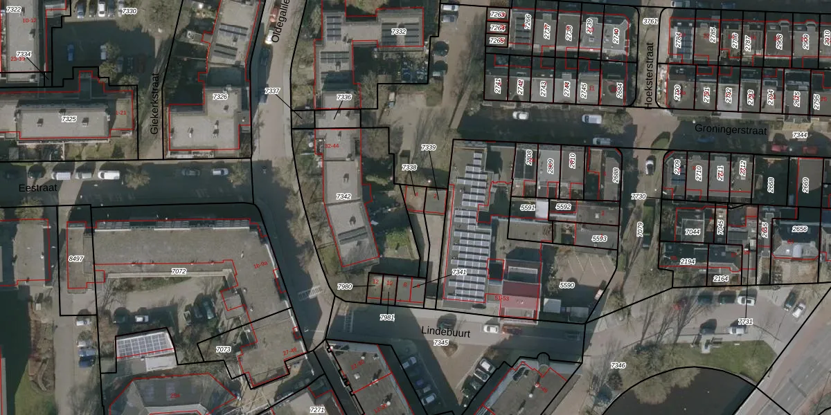 Gebruik de zoekbalk of klik op een perceel voor informatie over de adressen binnen dit perceel.