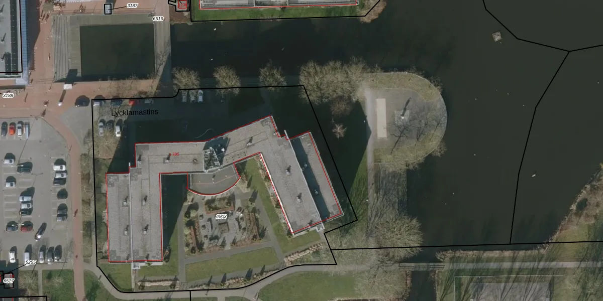 Het perceel waarop Lycklamastins 33 staat heeft een oppervlakte van 4984 m². Dit is een zeer groot perceel. De perceeloppervlakte wordt geregistreerd door het Kadaster. Gedetailleerde informatie over de maten van dit perceel kunt u vinden in het rapport Kadastrale kaart met maatvoering van Lycklamastins 33.