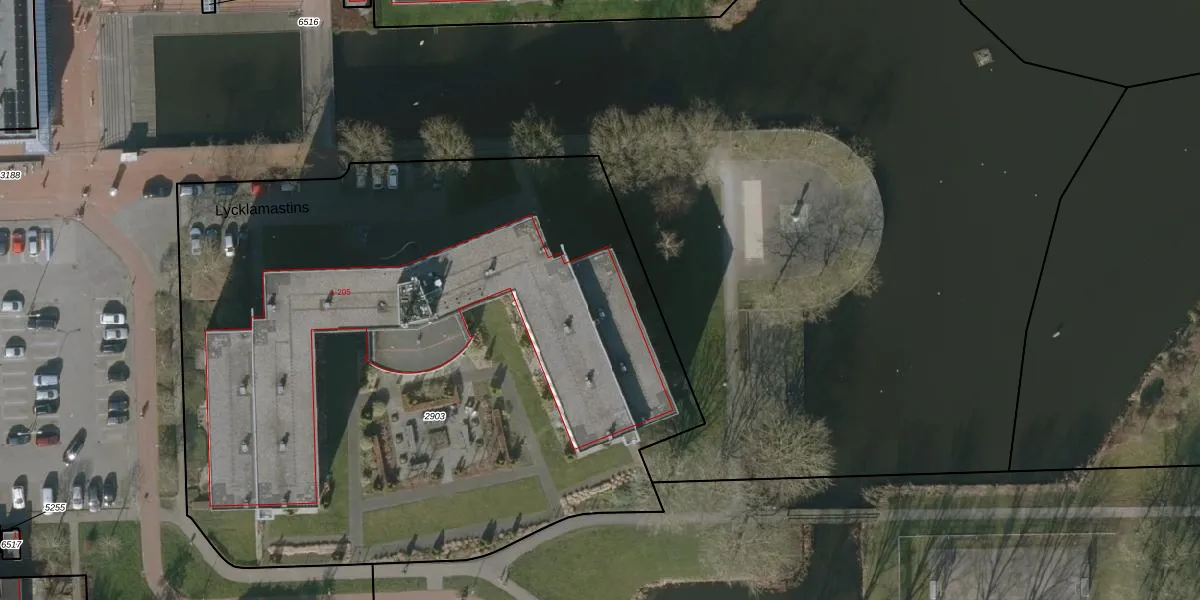 Het perceel waarop Lycklamastins 65 staat heeft een oppervlakte van 4984 m². Dit is een zeer groot perceel. De perceeloppervlakte wordt geregistreerd door het Kadaster. Gedetailleerde informatie over de maten van dit perceel kunt u vinden in het rapport Kadastrale kaart met maatvoering van Lycklamastins 65.