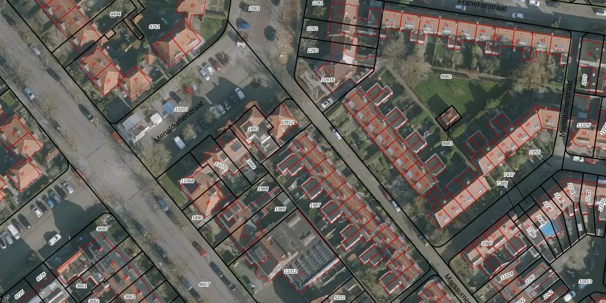 Het perceel waarop Marssumerstraat 22 staat heeft een oppervlakte van 1370 m². Dit is een zeer groot perceel. De perceeloppervlakte wordt geregistreerd door het Kadaster. Gedetailleerde informatie over de maten van dit perceel kunt u vinden in het rapport Kadastrale kaart met maatvoering van Marssumerstraat 22.