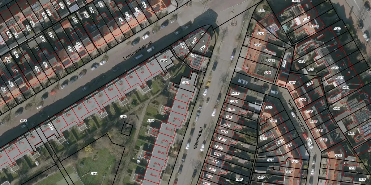Merelstraat 12 is gelegen op kadastraal perceel LWD00D1904. Deze kadastrale aanduiding is uniek en wordt gebruikt door het Kadaster om eigendomsrechten en andere zakelijke rechten vast te leggen. Het perceel maakt onderdeel uit van de kadastrale gemeente Leeuwarden.