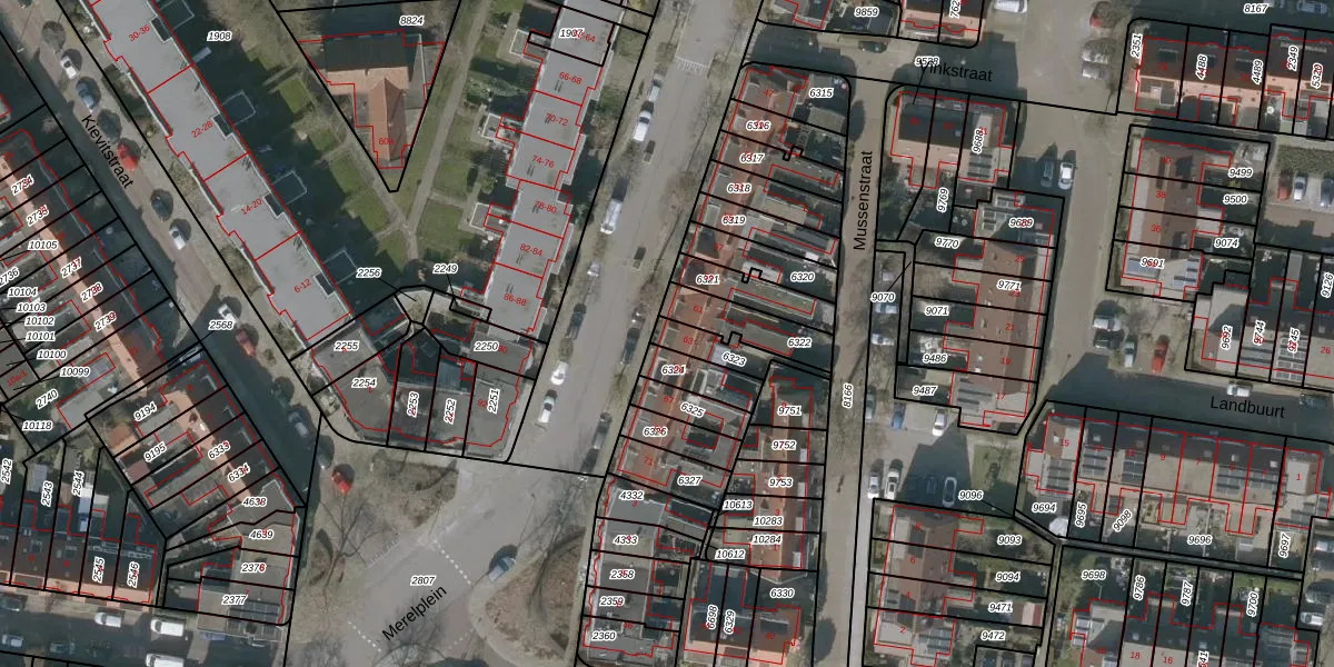 Het perceel waarop Merelstraat 63 staat heeft een oppervlakte van 95 m². Dit is een klein perceel. De perceeloppervlakte wordt geregistreerd door het Kadaster. Gedetailleerde informatie over de maten van dit perceel kunt u vinden in het rapport Kadastrale kaart met maatvoering van Merelstraat 63.