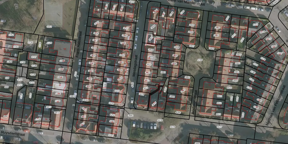 Het perceel waarop Mesdagstraat 13 staat heeft een oppervlakte van 73 m². Dit is een klein perceel. De perceeloppervlakte wordt geregistreerd door het Kadaster. Gedetailleerde informatie over de maten van dit perceel kunt u vinden in het rapport Kadastrale kaart met maatvoering van Mesdagstraat 13.