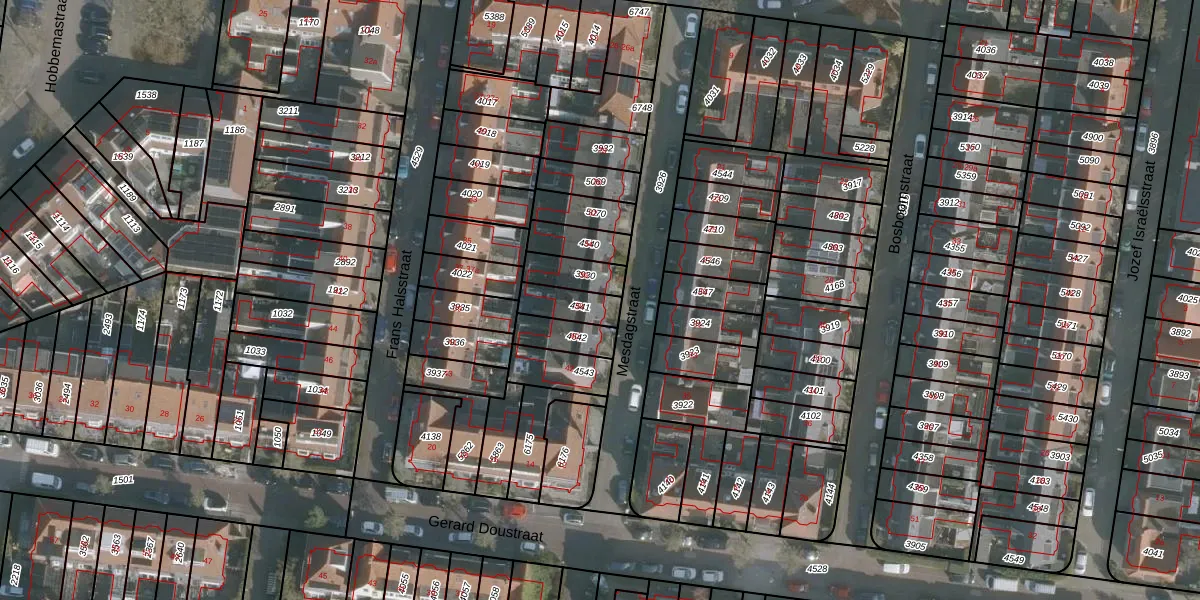 Het perceel waarop Mesdagstraat 38 staat heeft een oppervlakte van 89 m². Dit is een klein perceel. De perceeloppervlakte wordt geregistreerd door het Kadaster. Gedetailleerde informatie over de maten van dit perceel kunt u vinden in het rapport Kadastrale kaart met maatvoering van Mesdagstraat 38.