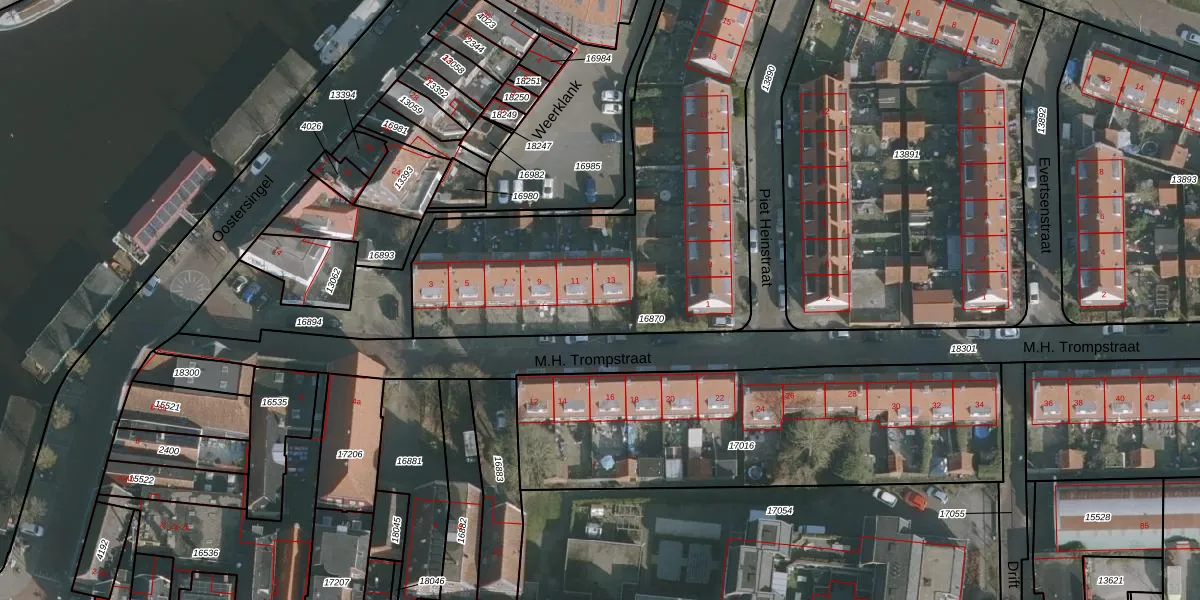 M.H. Trompstraat 13 is gelegen op kadastraal perceel LWD00G16870. Deze kadastrale aanduiding is uniek en wordt gebruikt door het Kadaster om eigendomsrechten en andere zakelijke rechten vast te leggen. Het perceel maakt onderdeel uit van de kadastrale gemeente Leeuwarden.
