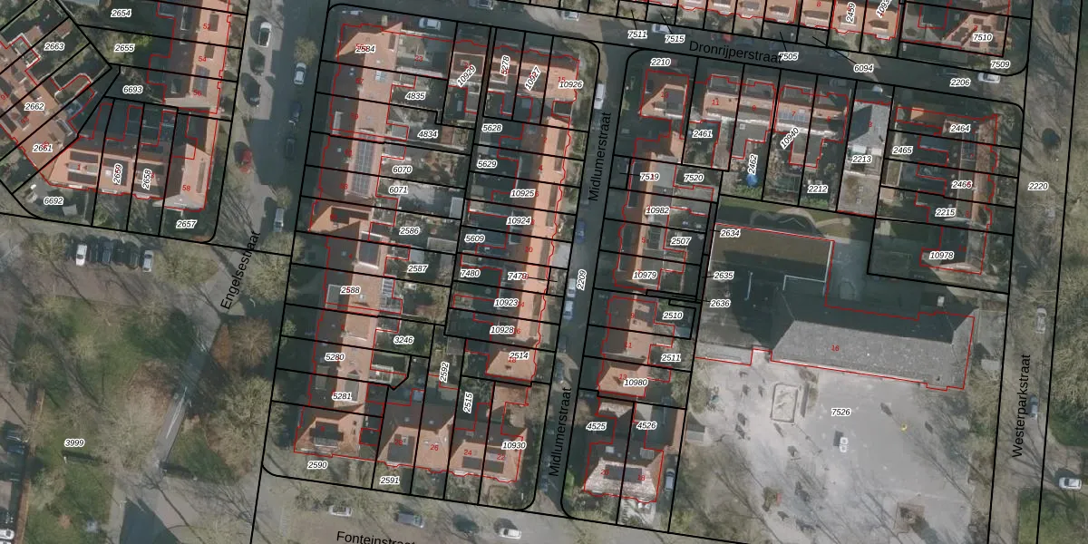 Gebruik de zoekbalk of klik op een perceel voor informatie over de adressen binnen dit perceel.