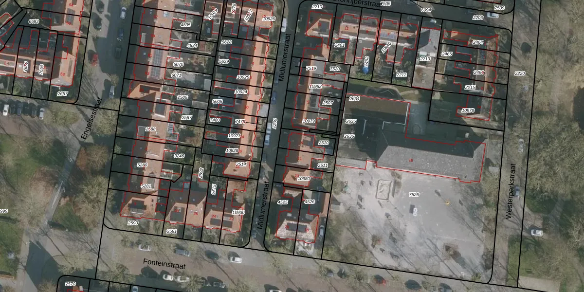 Gebruik de zoekbalk of klik op een perceel voor informatie over de adressen binnen dit perceel.
