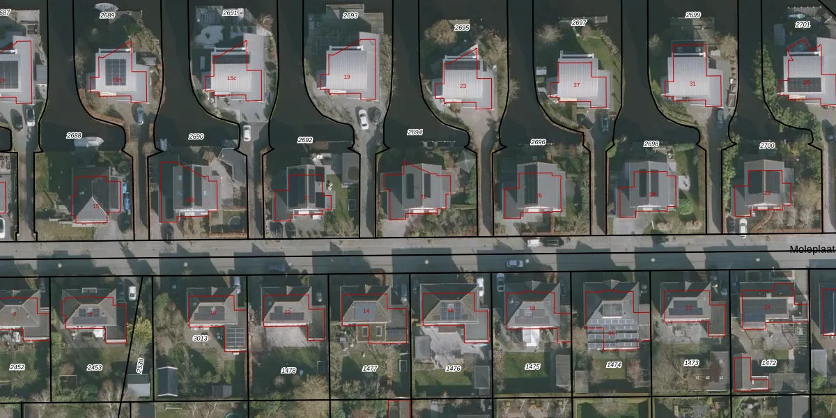 Het perceel waarop Moleplaat 21 staat heeft een oppervlakte van 873 m². Dit is een groot perceel. De perceeloppervlakte wordt geregistreerd door het Kadaster. Gedetailleerde informatie over de maten van dit perceel kunt u vinden in het rapport Kadastrale kaart met maatvoering van Moleplaat 21.