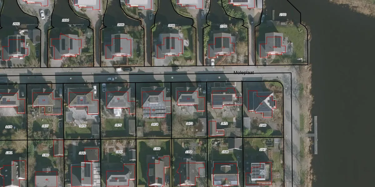 Het perceel waarop Moleplaat 22 staat heeft een oppervlakte van 572 m². Dit is een groot perceel. De perceeloppervlakte wordt geregistreerd door het Kadaster. Gedetailleerde informatie over de maten van dit perceel kunt u vinden in het rapport Kadastrale kaart met maatvoering van Moleplaat 22.