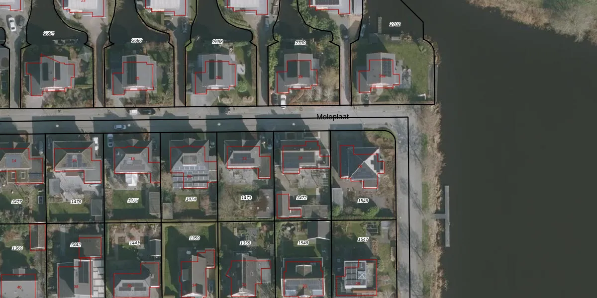 Het perceel waarop Moleplaat 24 staat heeft een oppervlakte van 572 m². Dit is een groot perceel. De perceeloppervlakte wordt geregistreerd door het Kadaster. Gedetailleerde informatie over de maten van dit perceel kunt u vinden in het rapport Kadastrale kaart met maatvoering van Moleplaat 24.