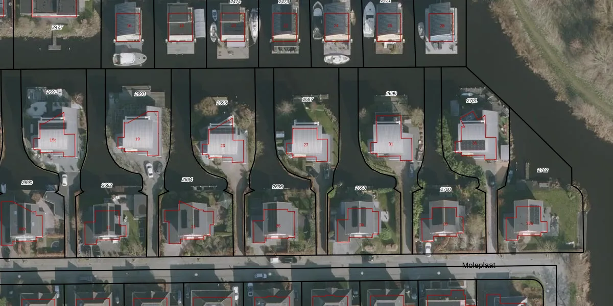 Het perceel waarop Moleplaat 27 staat heeft een oppervlakte van 837 m². Dit is een groot perceel. De perceeloppervlakte wordt geregistreerd door het Kadaster. Gedetailleerde informatie over de maten van dit perceel kunt u vinden in het rapport Kadastrale kaart met maatvoering van Moleplaat 27.