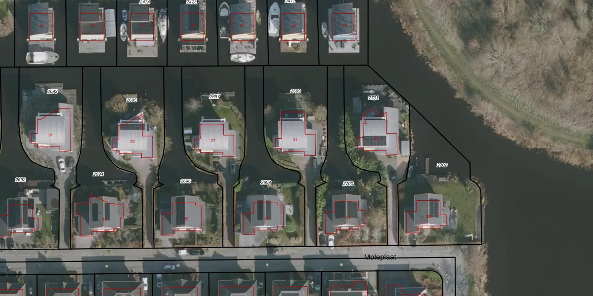 Het perceel waarop Moleplaat 31 staat heeft een oppervlakte van 846 m². Dit is een groot perceel. De perceeloppervlakte wordt geregistreerd door het Kadaster. Gedetailleerde informatie over de maten van dit perceel kunt u vinden in het rapport Kadastrale kaart met maatvoering van Moleplaat 31.