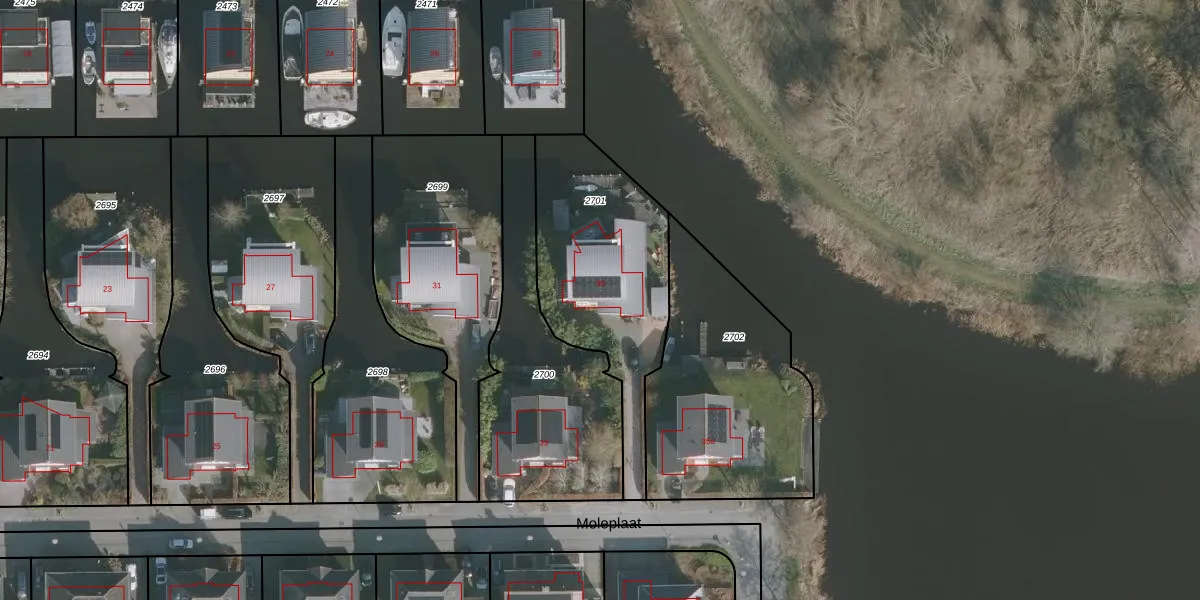 Het perceel waarop Moleplaat 35 staat heeft een oppervlakte van 796 m². Dit is een groot perceel. De perceeloppervlakte wordt geregistreerd door het Kadaster. Gedetailleerde informatie over de maten van dit perceel kunt u vinden in het rapport Kadastrale kaart met maatvoering van Moleplaat 35.