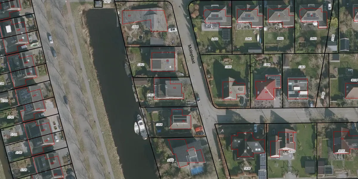 Het perceel waarop Moleplaat 63 staat heeft een oppervlakte van 528 m². Dit is een groot perceel. De perceeloppervlakte wordt geregistreerd door het Kadaster. Gedetailleerde informatie over de maten van dit perceel kunt u vinden in het rapport Kadastrale kaart met maatvoering van Moleplaat 63.
