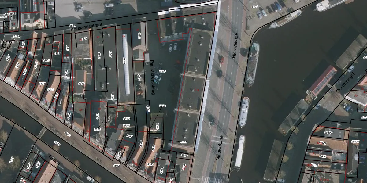 Het perceel waarop Nieuwekade 16 staat heeft een oppervlakte van 2161 m². Dit is een zeer groot perceel. De perceeloppervlakte wordt geregistreerd door het Kadaster. Gedetailleerde informatie over de maten van dit perceel kunt u vinden in het rapport Kadastrale kaart met maatvoering van Nieuwekade 16.
