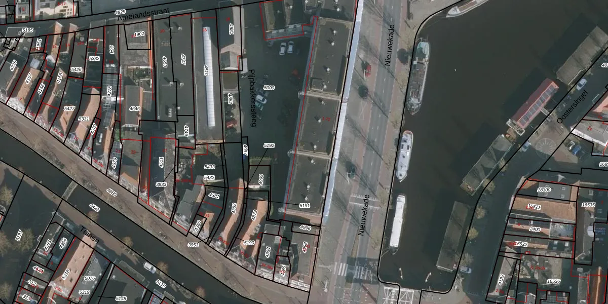 Het perceel waarop Nieuwekade 34 staat heeft een oppervlakte van 2161 m². Dit is een zeer groot perceel. De perceeloppervlakte wordt geregistreerd door het Kadaster. Gedetailleerde informatie over de maten van dit perceel kunt u vinden in het rapport Kadastrale kaart met maatvoering van Nieuwekade 34.
