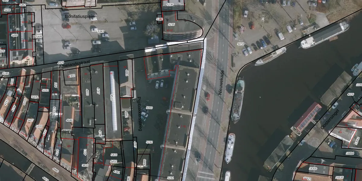 Nieuwekade 4 is gelegen op kadastraal perceel LWD00B5000. Deze kadastrale aanduiding is uniek en wordt gebruikt door het Kadaster om eigendomsrechten en andere zakelijke rechten vast te leggen. Het perceel maakt onderdeel uit van de kadastrale gemeente Leeuwarden.