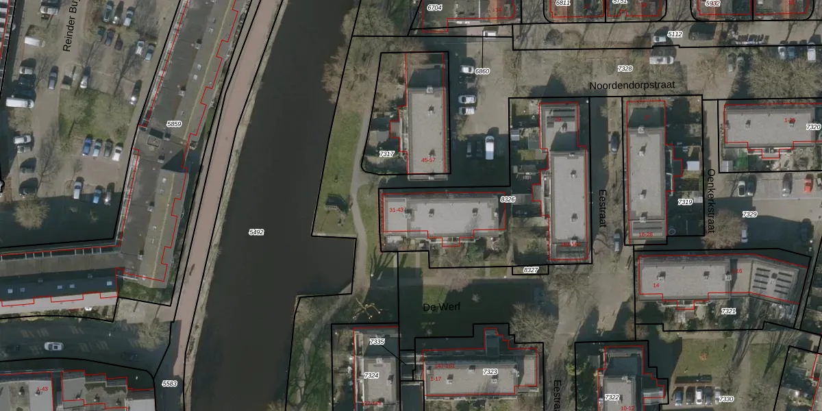 Het perceel waarop Noordendorpstraat 39 staat heeft een oppervlakte van 1376 m². Dit is een zeer groot perceel. De perceeloppervlakte wordt geregistreerd door het Kadaster. Gedetailleerde informatie over de maten van dit perceel kunt u vinden in het rapport Kadastrale kaart met maatvoering van Noordendorpstraat 39.
