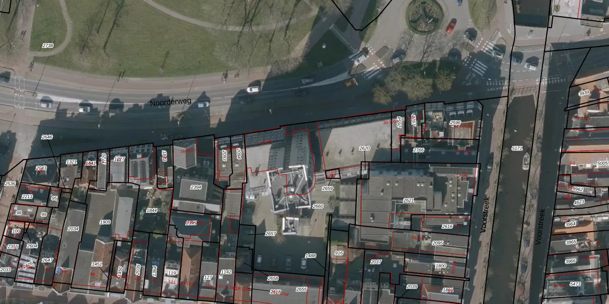 Noorderweg 100 is gelegen op kadastraal perceel LWD00A2660. Deze kadastrale aanduiding is uniek en wordt gebruikt door het Kadaster om eigendomsrechten en andere zakelijke rechten vast te leggen. Het perceel maakt onderdeel uit van de kadastrale gemeente Leeuwarden.