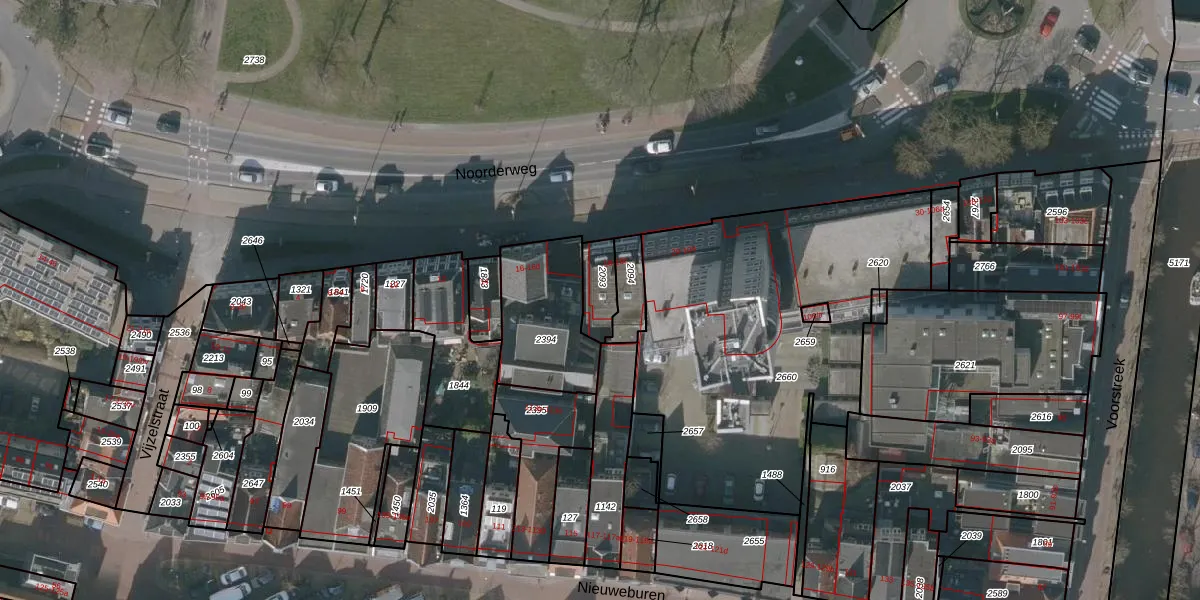 Noorderweg 18 is gelegen op kadastraal perceel LWD00A2093. Deze kadastrale aanduiding is uniek en wordt gebruikt door het Kadaster om eigendomsrechten en andere zakelijke rechten vast te leggen. Het perceel maakt onderdeel uit van de kadastrale gemeente Leeuwarden.