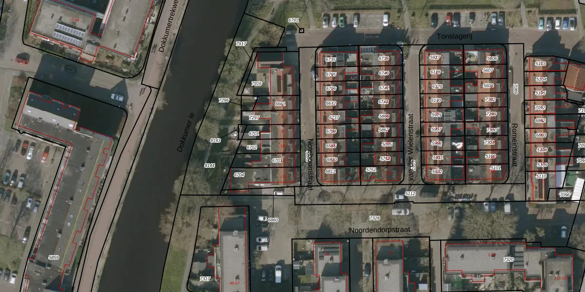 Gebruik de zoekbalk of klik op een perceel voor informatie over de adressen binnen dit perceel.