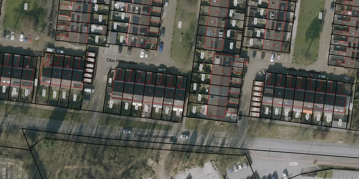 Gebruik de zoekbalk of klik op een perceel voor informatie over de adressen binnen dit perceel.